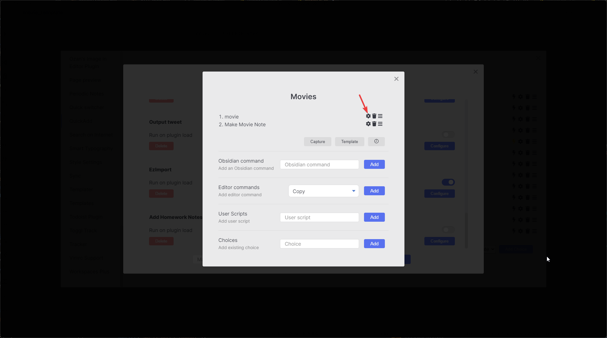 8. Go back out to your QuickAdd main menu and add a new Macro choice. Again, you decide the name. I named mine đŸŽŦ Movie. This is what activates the macro.